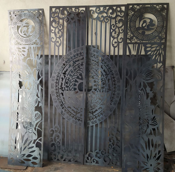 Cắt laser hoa văn có thể ứng dụng cho kim loại (inox, thép, nhôm) và cả phi-kim (gỗ, mica, nhựa) tùy nhu cầu trang trí nội ngoại thất hoặc sản phẩm nghệ thuật.